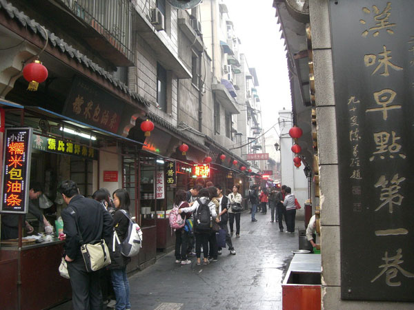 在路边小摊,要一碗热干面,是本地独有小吃,面煮熟,大约是油里滚过,晾干,等吃的时候,在水里过一道,沥净水,加很多榨菜,萝卜干,葱花……芝麻酱很香。也可以要凉面,汤包,米酒,馄饨,烧卖,糯米鸡——这城自开埠以来就是商都,大家都习惯在外头吃早饭,当地人叫:过早。