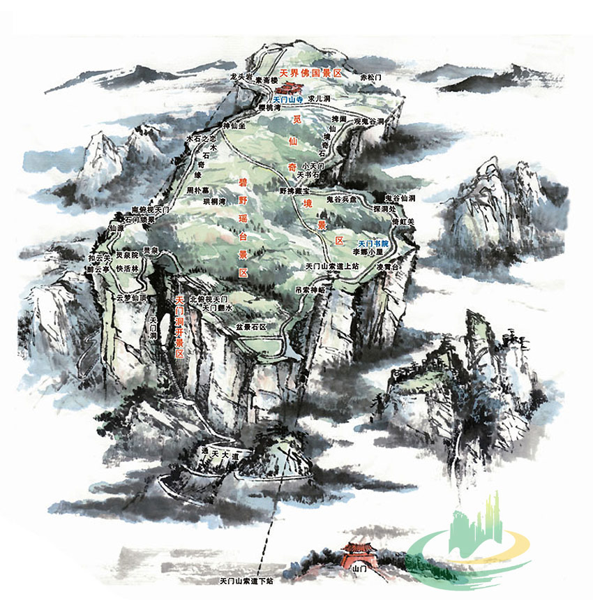 天门山索道全长7455米,水平高差1279米,是世界最长的高山客运索道。索道修建耗时2年,耗资2.5亿人民币,其中一段有着高达38°的爬坡角设计在国内乃至世界都极为罕见。