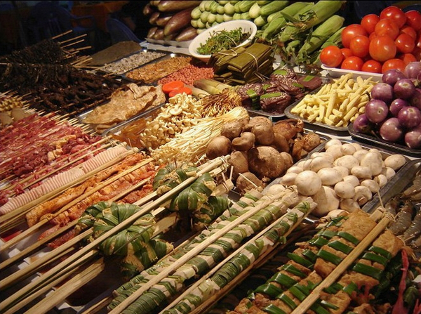 西双版纳除了美景还有更多的傣味美食尤其是到了夜晚,在所有的傣味里要数烧烤的最被推崇。西双版纳的烧烤独树一帜,烧烤街也是遍布市区大街小巷。当一个城市某一方面成为大家口口相传,甚至吸引一些人慕名而来,那么它也就是一种“文化”!西双版纳的夜市烧烤只是游客们观光一景,在人海如潮、卖唱者的陪衬、穿着傣族服饰的服务员下,虽然只是夜市中的烧烤,实已积蕴民族文化的生活。当您亲历西双版纳的烧烤“文化”时您一定震惊。