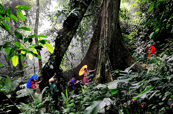 西双版纳是全国唯一热带雨林自然保护区,林木参天蔽日,莽莽苍苍,绵亘上百里。它犹如华夏大地上的一颗璀璨明珠,在西南边陲享受着阳光雨露的润泽,保持着国内仅有的大片的热带雨林,行走在西双版纳的原始森林中,用心拥抱自然、亲吻雨林,漫游在浓密的氧气中。阳光和密林演绎出的光影仿佛是梦幻中的世界,只听得自己踩在厚厚的落叶层上沙沙的声音。纯美、自然、原生态,吐故纳新,深呼吸中感受一人一世界,对着雨林说心事,让心灵感受自然之美。