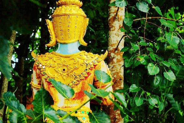 西双版纳的原野隔绝了中原文化的教化,与泰国、缅甸等东南亚诸国却近在咫尺,于是小乘佛教随风而入,版纳境内,人人都是俗家子弟,(男子少年之前都必须剃度侍佛,成年后还俗)。佛塔寺庙与傣家竹楼、翠竹古木交相掩映,一派神圣景象。版纳佛风有别中原而酷似东南亚,又融入傣族人的文化风格。版纳人笃信佛教又不拘泥细节,因此,版纳的寺庙并没有很多清规戒律,对佛的信仰更体现在与大自然的和谐共处之中,真正是时时有佛,处处是佛。