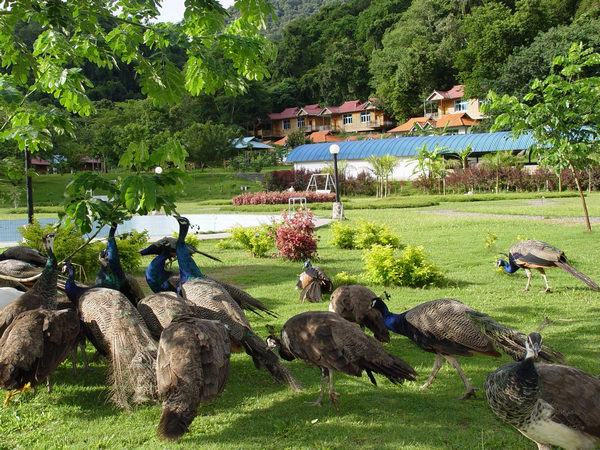 孔雀湖位于允景洪中心,三面有湖水围绕,清如明镜。1977年始辟为公园,园内建有亭台水榭,植有奇花异卉,并饲养着孔雀、巨蟒、狐狸、野猪、猴子、八哥、画眉等珍稀动物。岸上奇花异卉争奇斗妍,湖中建有傣式水榭,湖水也清清,碧波也荡漾,睡莲盛天,宁静的湖面倒映着街道两旁挺拔的油棕、贝叶、槟榔、椰子,是游客乘凉、歇息的好地方。湖内备有游船,游人可在迷人的孔雀湖上荡起双桨,尽兴游玩。
