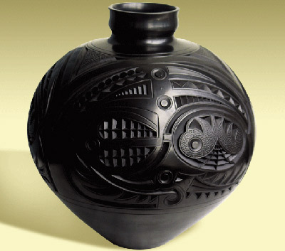 是傣族民间的传统手工制品,造型新颖别致,雕刻精细,图案古朴典雅,美观大方。用黑陶茶具泡茶,醇香之味保持长久。黑陶花瓶插花,有较好的保鲜作用。